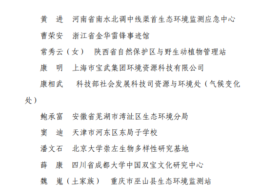 第三届中国生态文明奖先进个人拟表彰名单
