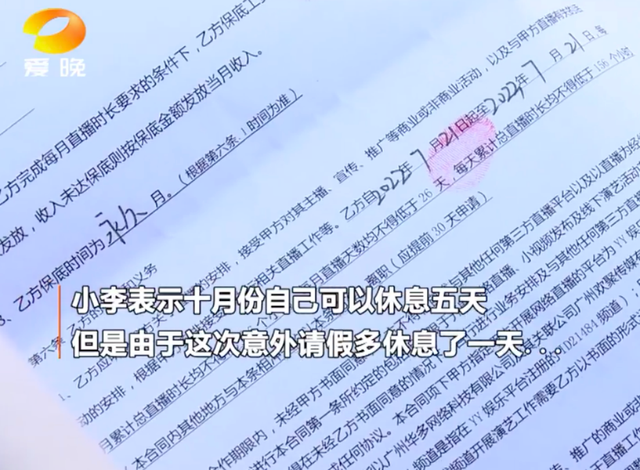 记者来到了涉事公司,负责人对记者表示,李女士的直播天数没有达到标准,所以拿不到保底工资。