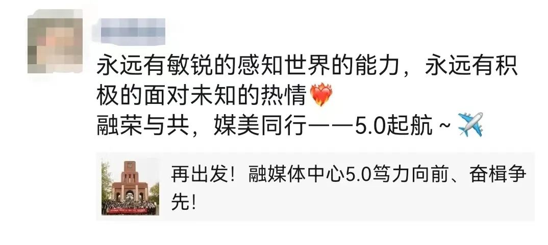 希望未来的日子里,我们可以用热烈的姿态投身于融媒体中心的工作中,更好地融入这个大家庭,也衷心的祝愿我们的融媒体中心越来越好。