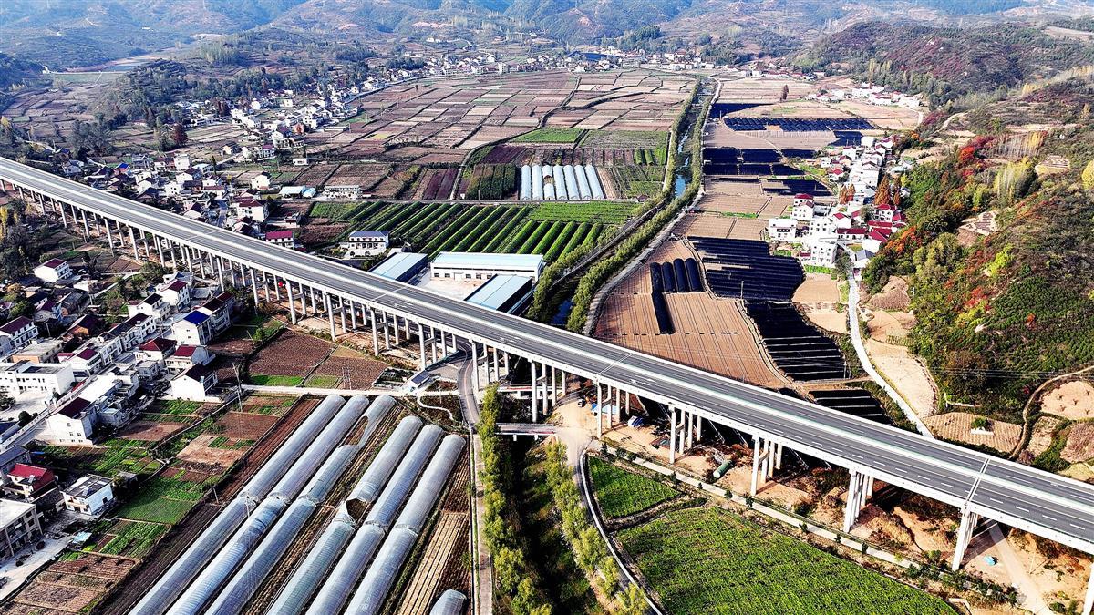 11月6日,十堰市房县军店镇军马村“四好农村路”穿越村庄腹地,水泥路通往家家户户,带动了全村中药材、蔬菜和红薯粉加工产业全域发展。近年来,房县围绕乡村振兴提级提标“四好农村路”,构建“以路兴产业、以产业拓路、路产融合发展”的双促进格局,解决农产品运输难,助力农民增收。目前,当地“四好农村路”构建成“外通内联、通村畅乡、安全便捷”的交通运输网络,公路通车总里程达5383.205公里,基本形成了县城2小时到下辖各乡镇、10分钟上高速、1小时到武当山机场的“211交通经济圈”,有效提质了山里人出行、农副土特产外运效率,激活了乡村旅游产业大发展。(视界网 张启龙 摄)