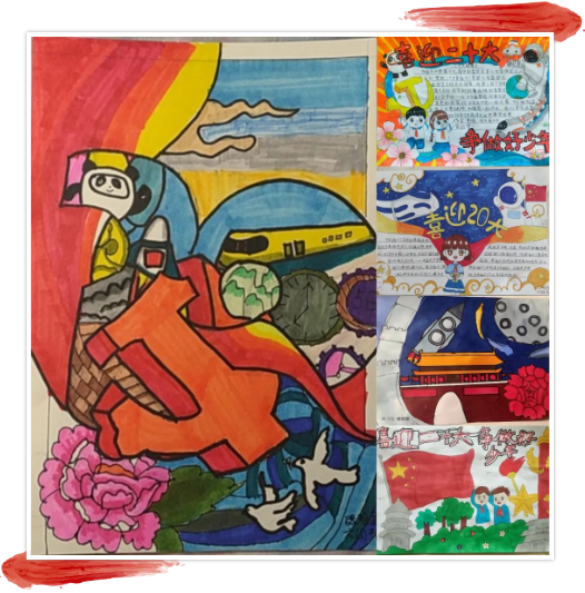 同学们还制作了精美的手抄报,从神舟十四号载人飞船出征太空,到天安门广场前五星红旗冉冉升起……孩子们笔下一个个带有鲜明时代印记的视觉符号,将日新月异的新中国鲜活地展现在我们眼前。