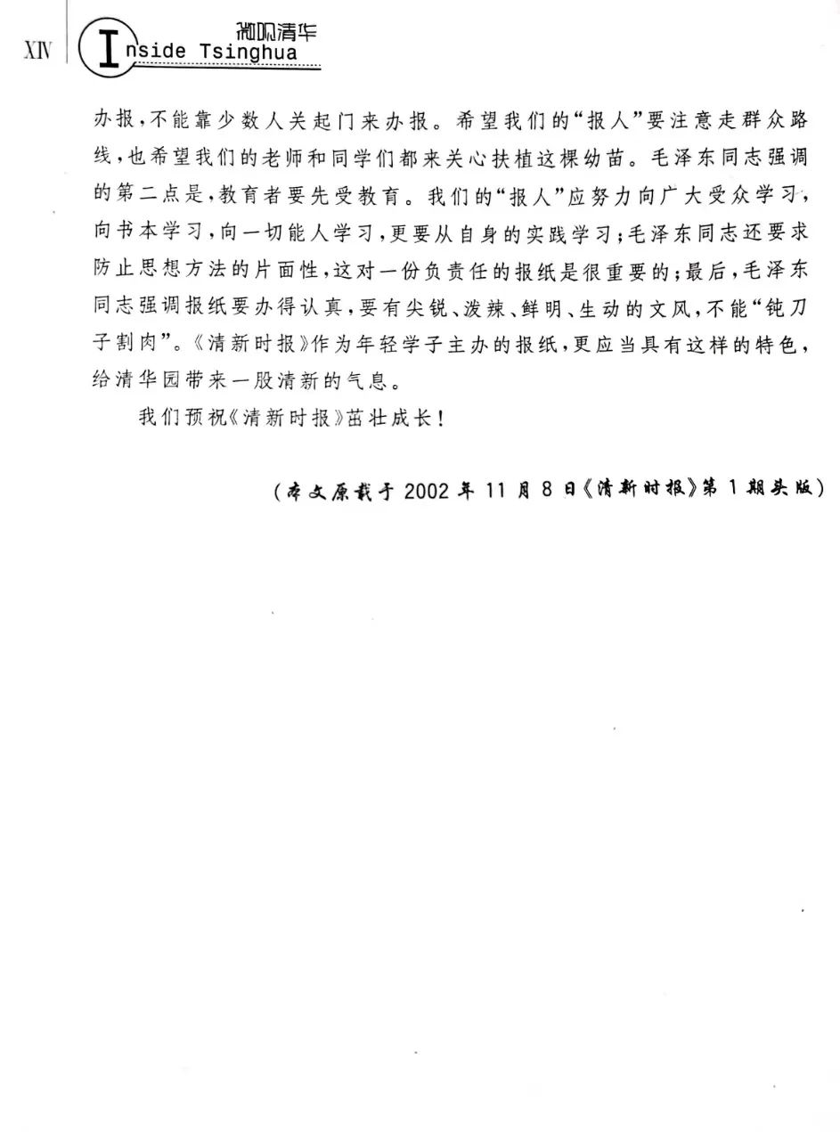 二十年的时间里,从校园调查到人物特稿,再到时事评论,清新时报发表了数千篇文章。我们与读者共同见证清华校园的变迁,记录时代的痛楚、欢乐与泪水,感受每一篇报道背后无言的力量。