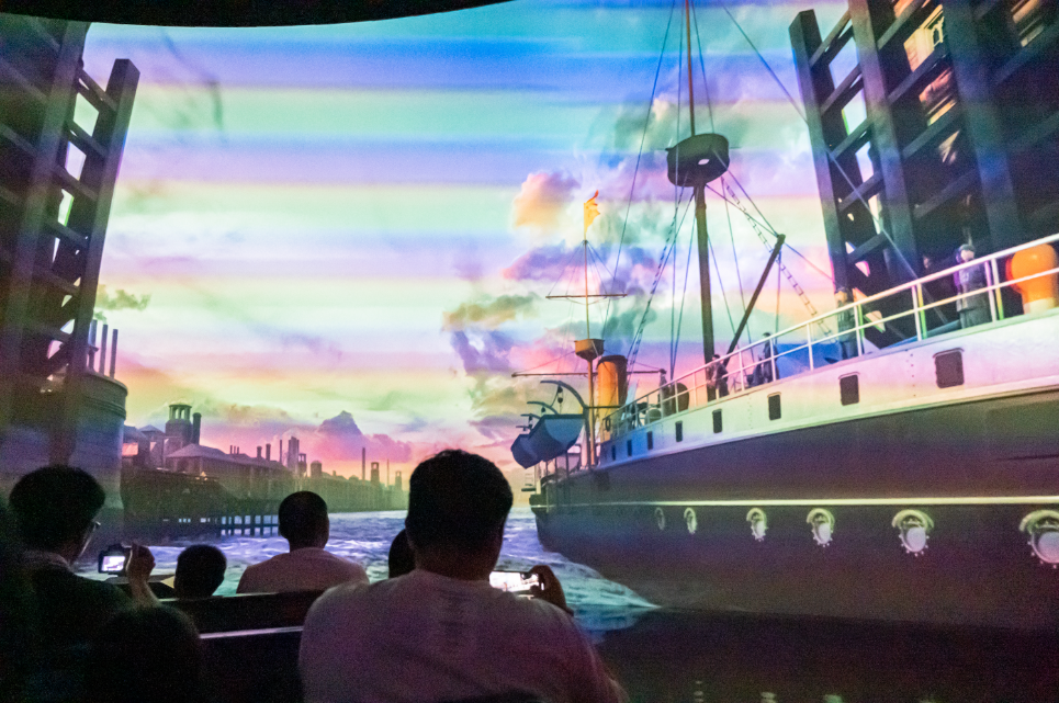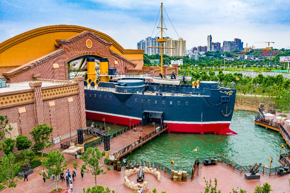 由方特集团自主开发的大型室内AR沉浸式轨道船体验项目《致远 致远》(以下简称“项目”)以家喻户晓的北洋水师“致远”舰为原型,打造了国内首个全自动水上巡航大型船载RIDE体验项目。项目集数字虚拟影像场景、大型全程可控动感轨道船、高仿真特技特效、智能控制等技术于一身,实现多元互动体验让游客沉浸其中。作为高科技红色文化主题公园的重点项目,其充分利用科技赋能将文化历史、表演艺术有机融合,为主题公园数字化发展创新开辟了新道路。2021年在赣州、宁波、淮安等地开放后,项目凭借参与性强、交互性好、体验度深,受到游客欢迎,为创新开展爱国主义教育,带动当地特色旅游高质量发展贡献了力量。