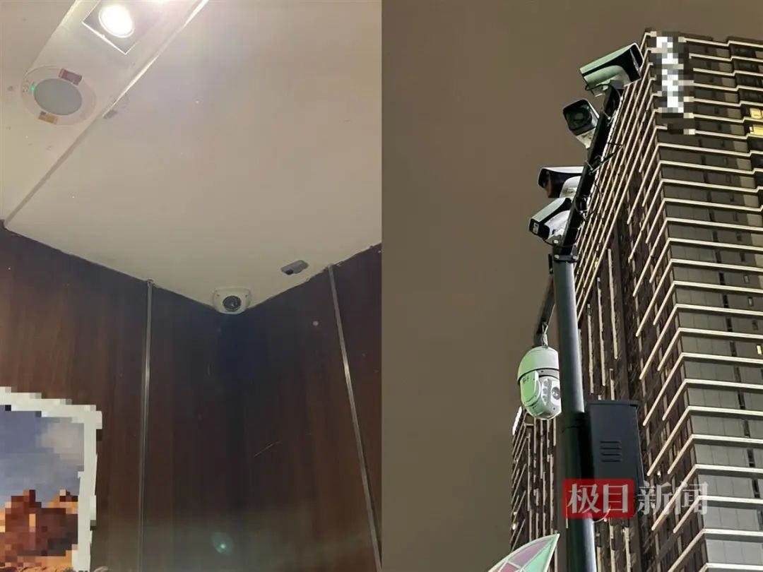11月4日,记者实地走访了该小区。这是一处商住两用小区,大楼外转角处、楼外广场和快递柜均有摄像头,进入住宅的电梯需要刷门禁卡。门口有工作人员值守,但不会询问身份或登记信息,若没有门禁卡,可请其代刷。电梯出入口和电梯内部均有摄像头,在住宅内部过道尽头同样也有监控摄像头,不过该摄像头是对着公共区域。