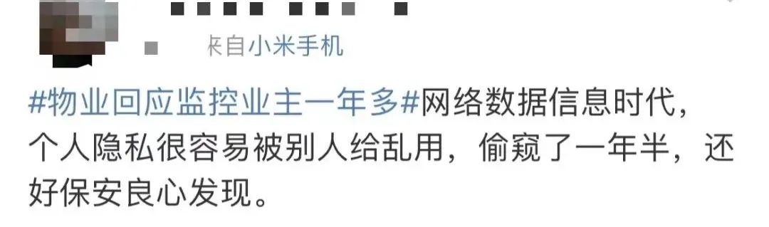河南泽槿律师事务所主任律师付建认为,小区监控摄像头的作用是保障业主的人身财产安全以及公共区域的安全。未经业主同意,擅自实时监控并记录业主日常一举一动的行为,涉嫌侵犯业主的个人信息以及隐私权。根据我国《民法典》关于对隐私权的规定,公民私人生活安宁与私人信息依法受到保护,他人不得实施非法侵扰、知悉、搜集、利用和公开等侵犯隐私权的行为。