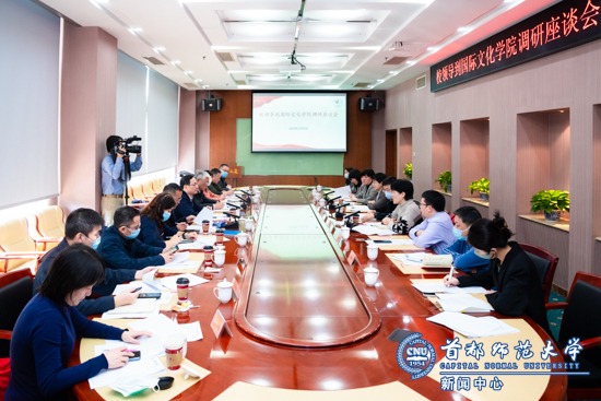 国际文化学院详细汇报了学院的优势与特色、机遇与挑战及未来发展思路,表示将在首都师范大学领导、职能部处和各院系的关心支持下,以党建为引领,坚持党建与业务融合发展,以“攀登精神”为指引,进一步加强学科建设和高层次人才引育,全面推进学院高质量发展。调研组就首都师大整体工作和学院未来发展同与会干部、教师代表进行了深入交流。