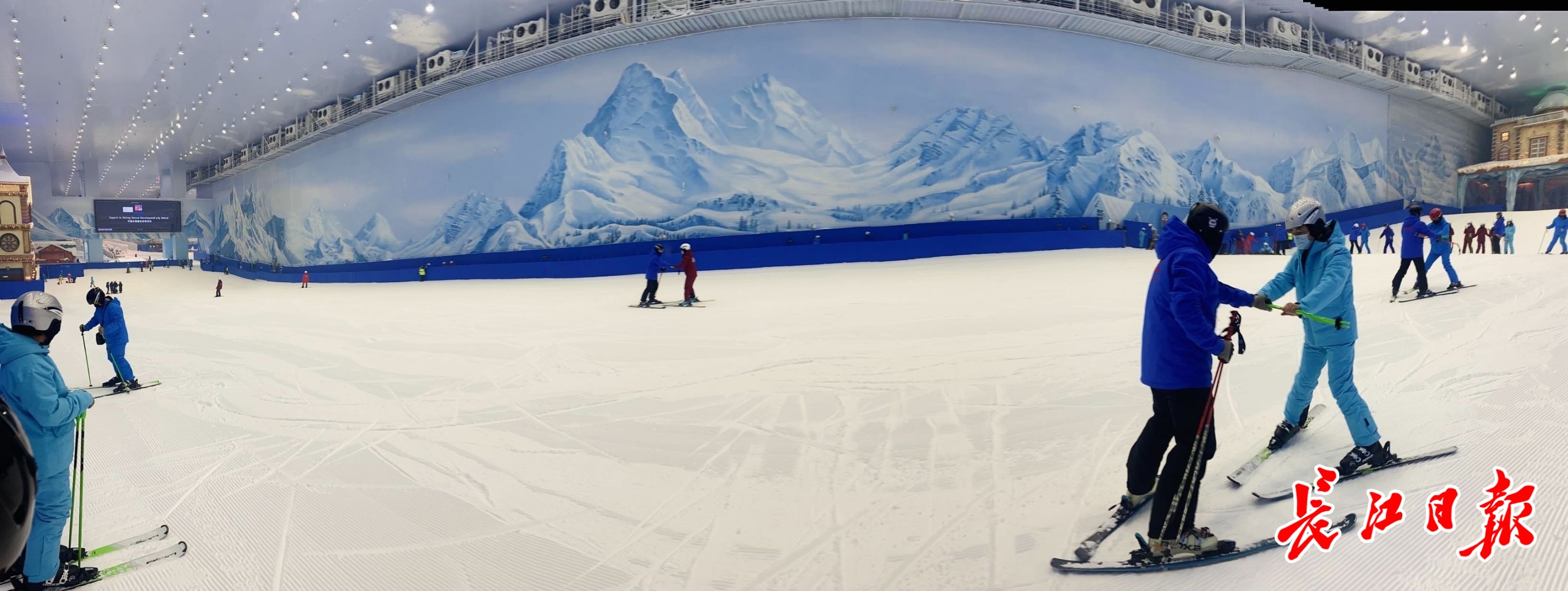 具有滑雪功能的“雪山区”总长200米,最高落差近16米的巨型坡道则让人沉浸式体验到了室内滑雪场地带来的速度刺激感。据介绍,该场地设有初、中级雪道,坡度分别为7°和11°,零基础滑雪爱好者也可以一试身手。场地还为滑雪爱好者预留了专用的地形公园,用以练习提升技能和技巧。在专业教练手把手的带领下,记者体验了热身、摔倒、刹车、滑行……一系列动作下来,不仅口呼白气,还全身冒热气,不过也终于可以松开教练的手,挪动雪板,在冰雪天地里溜达一下了。