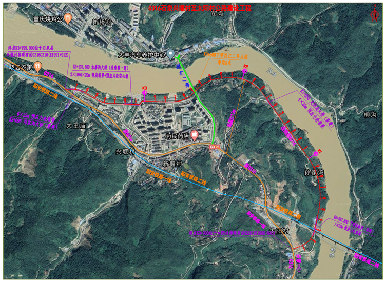 G316石泉太阳村至兴堰村公路项目线路示意图