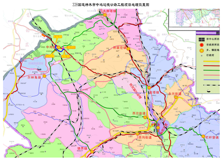 G338中鸡镇过境公路项目线路示意图