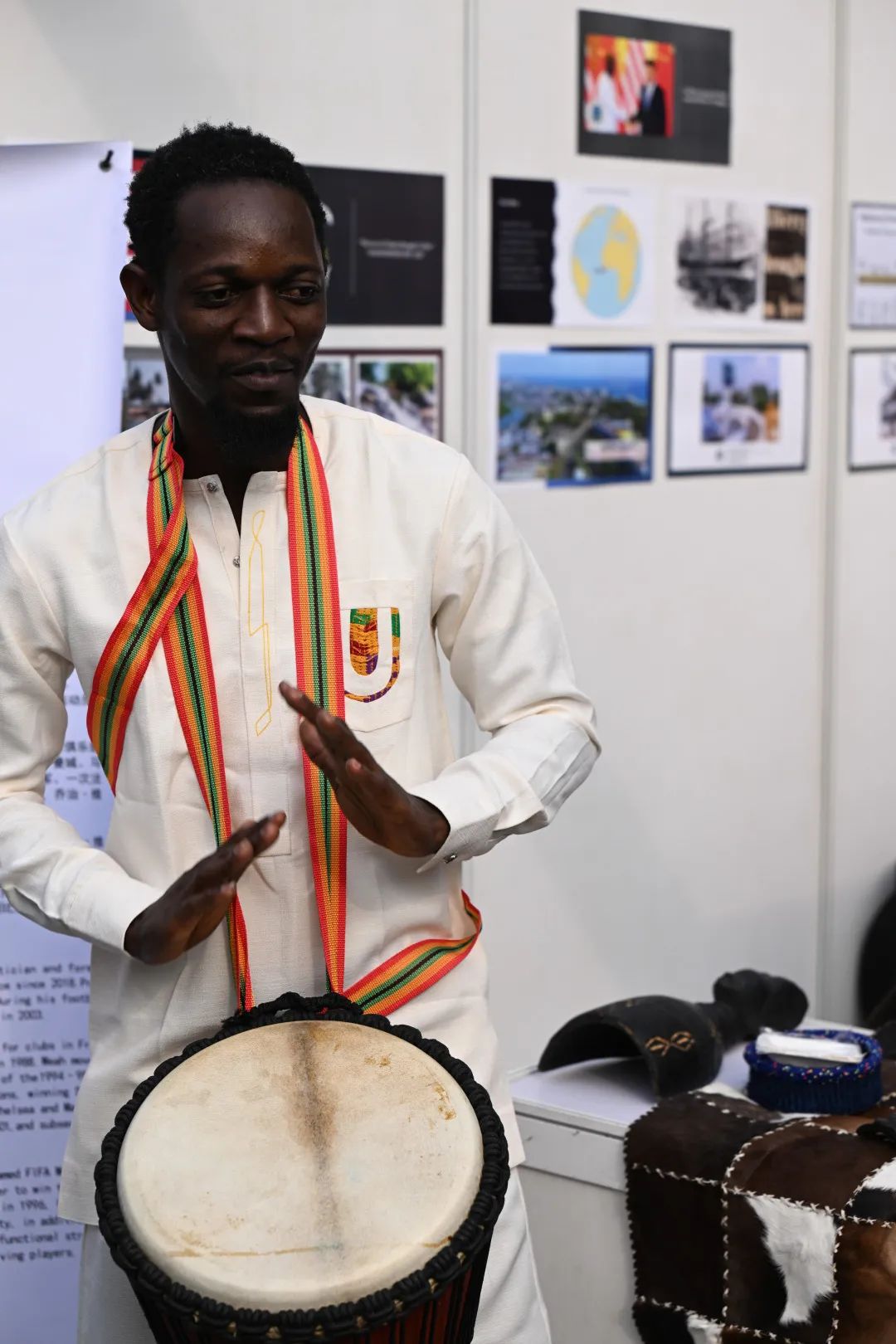 “想跟我一起玩儿利比里亚的乐器吗?”