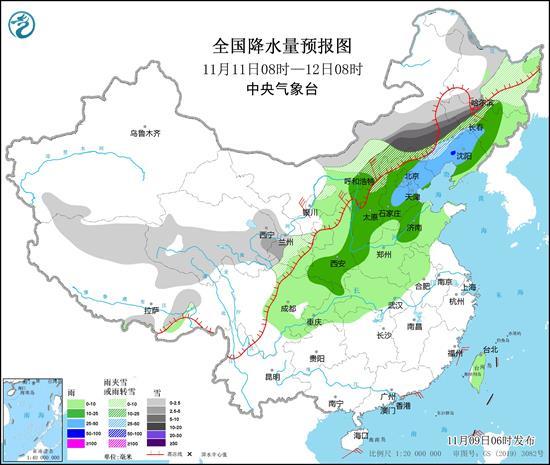 后天,内蒙古中东部、东北地区中部和西部、青藏高原北部、西北地区中部等地部分地区有小到中雪或雨夹雪,其中,内蒙古东南部和中部、吉林中西部等地部分地区有大到暴雪。东北地区西部和南部、西北地区东南部、陕西中北部、华北大部、黄淮东部等地部分地区有中到大雨,局地有暴雨。