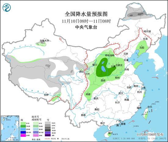 今天冷空气影响范围仍主要集中在西北地区,华南一带降雨有所减少、减弱。明天至13日,冷空气陆续东移南下,由于此次过程水汽条件配合较好,中东部地区将出现较大范围雨雪天气。