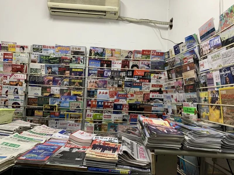 上海街头,藏在小店里的书报摊也不少。从虹口区甜爱路与甜爱支路交叉口路过,很难注意到仅2平方米门面的“四季烟酒店”,需仔细打量才能看到透明卷帘后“每周广播电视”的红色报头。店铺内十分拥挤,不到50厘米的过道旁边是一排烟酒柜,柜面上陈列着十几份日期最新的报纸,角落里还有《读者》等杂志,数量不多但种类较全,算得上是微缩版书报摊。