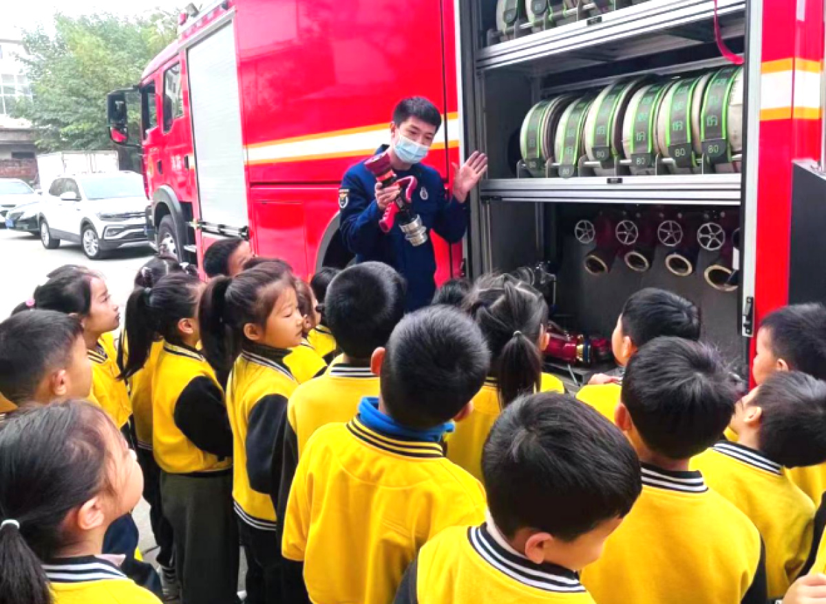 上午9:30,在经济开发区消防大队战士的指导下,经济技术开发区启源幼儿园园长赵改红拉响了紧急警报,幼儿园各班教师迅速按紧急预案的疏散线路带领幼儿拿起湿毛巾,捂住口鼻,猫着身子,分两道楼梯迅速有序下楼。孩子们很快集中到操场安全地带,教师迅速地清点人数,并向总指挥报告,整个疏散活动只用了2分多钟。