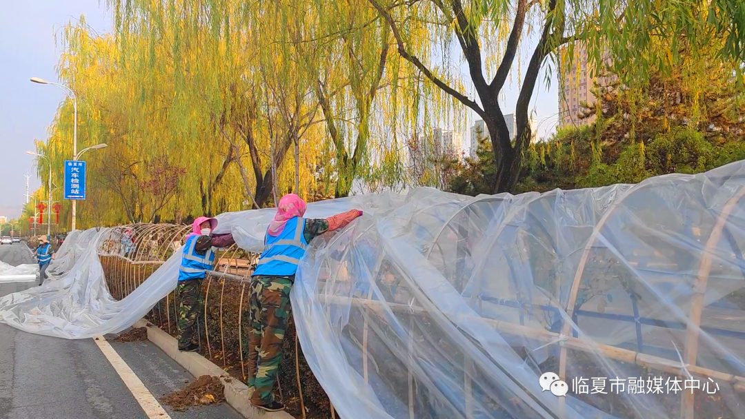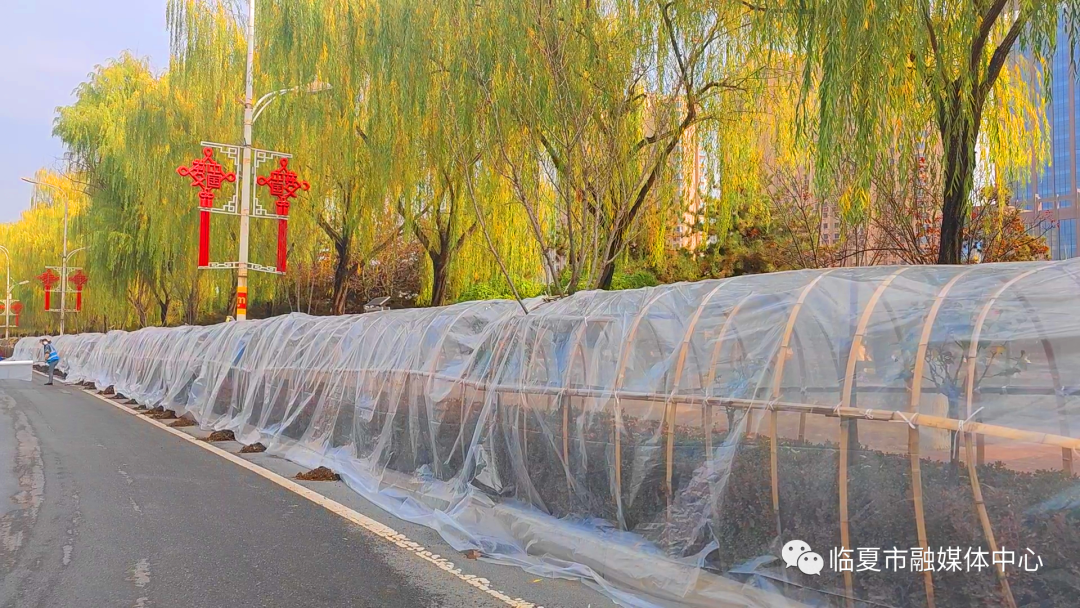 临夏市生态绿化中心北滨河路绿化所所长 何国强:我们从今年十月七号开始搭建保温大棚,并同步浇灌冬水,保证树状月季及其它苗木安全过冬。