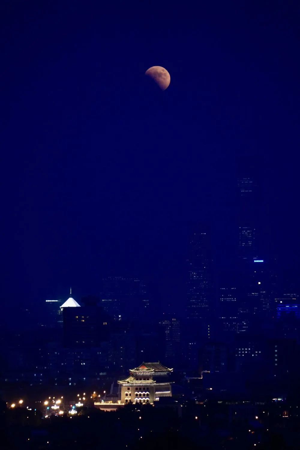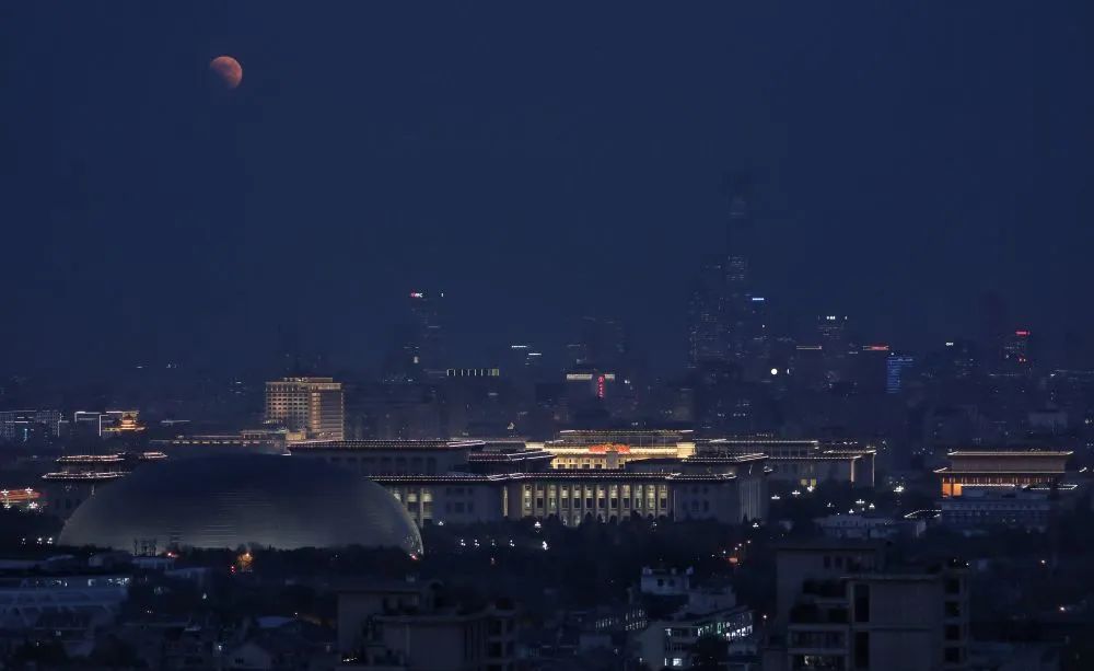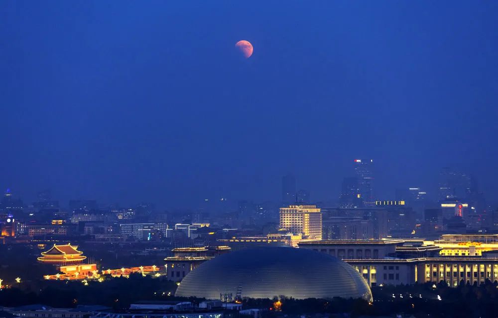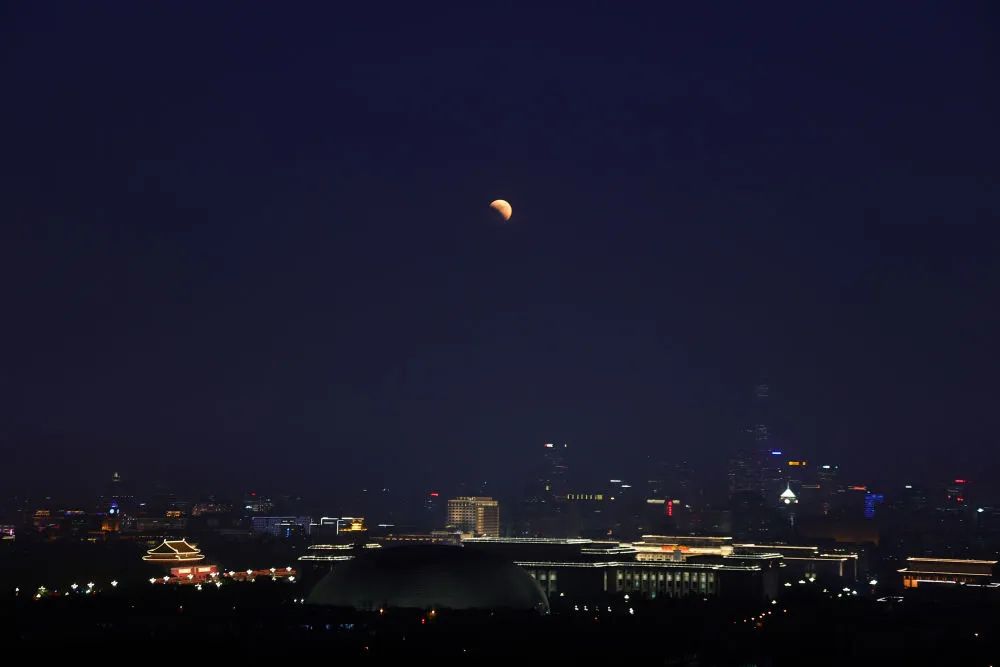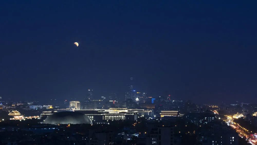 这是11月8日在北京永定门附近拍摄的月食。新华社记者 卢哲 摄