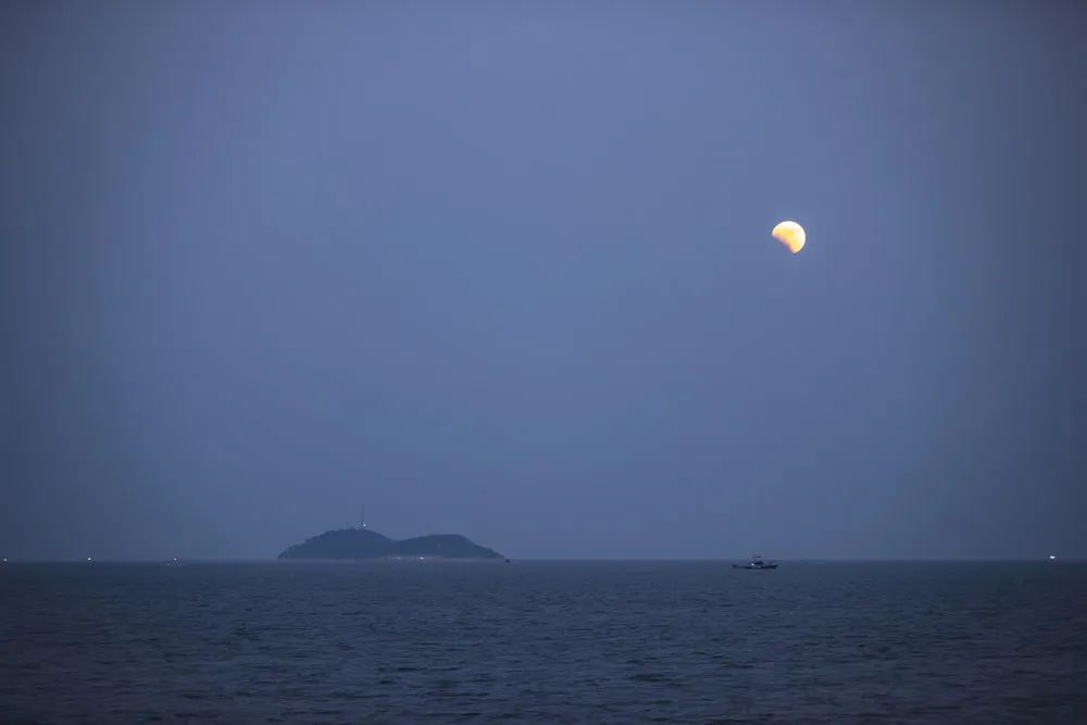 11月8日在浙江省舟山市拍摄的月食。新华社发(姚凯乐摄)