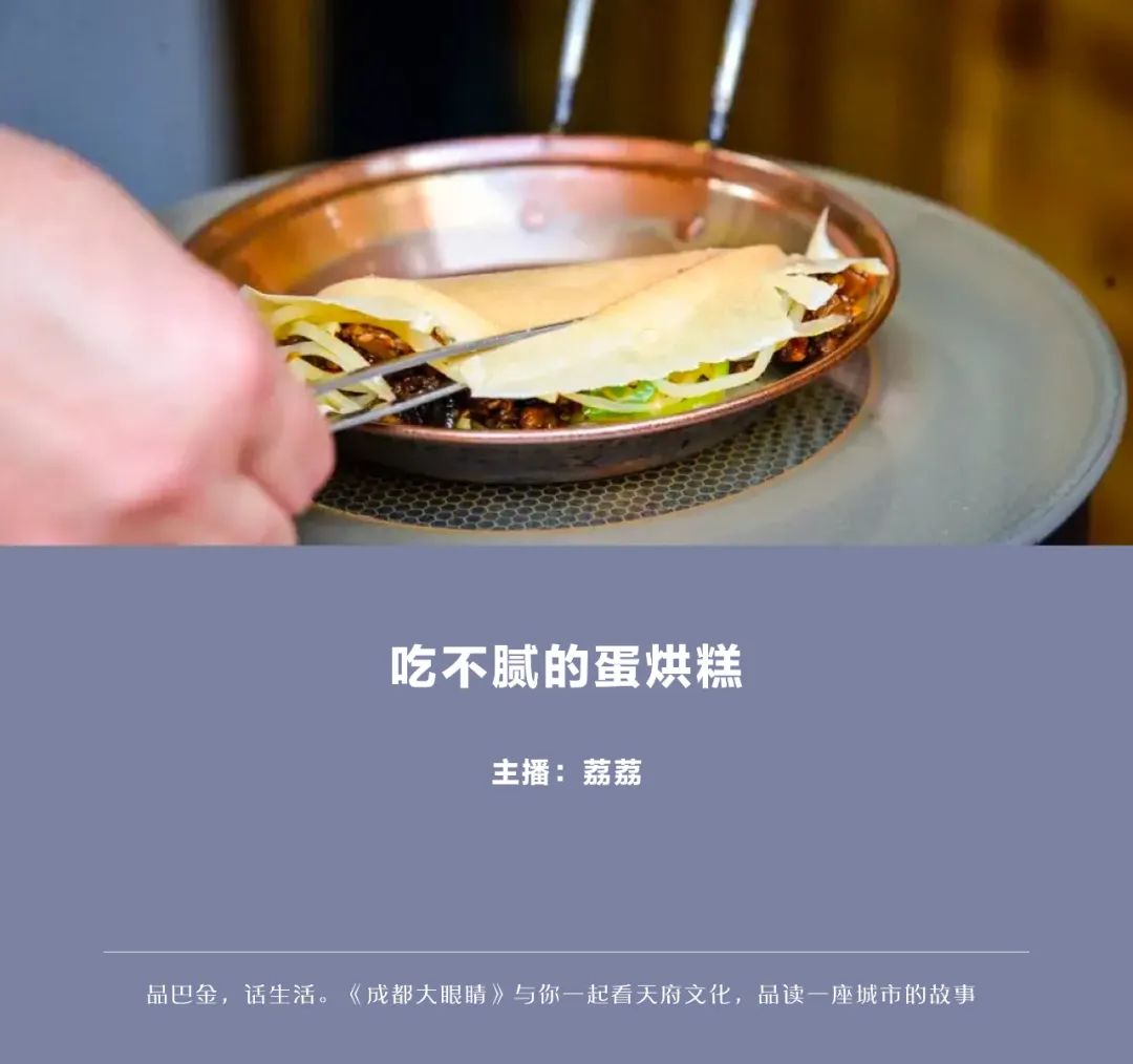 亲爱的读者朋友们大家好,欢迎来到 四川文艺出版社 大声武气 和 成都市青羊区双眼井社区 联合打造的成都地域文化分享节目《成都大眼睛》(第二季)的第十一期节目,本期主题:“吃不腻的成都名小吃蛋烘糕”。