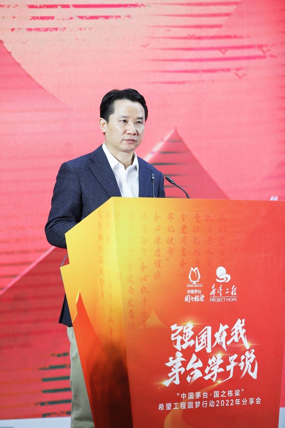 茅台集团党委书记、董事长,贵州茅台酒股份有限公司董事长丁雄军致辞,畅谈了自己的三点感想:社会责任是国企基因,茅台将矢志不渝践行大担当,助力美好生活万家共享;青年人才是强国之基,茅台将一如既往当好热心人,助力绚丽之花蓬勃绽放;希望工程是崇高事业,茅台将持之以恒播种新希望,助力国之栋梁茁壮成长。