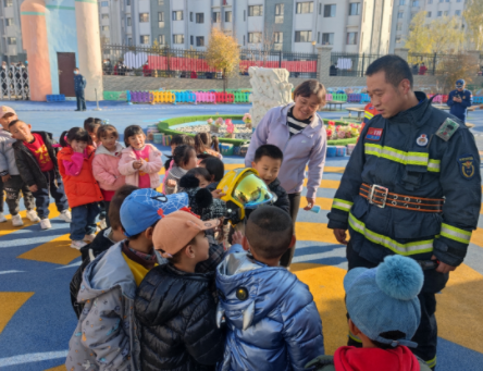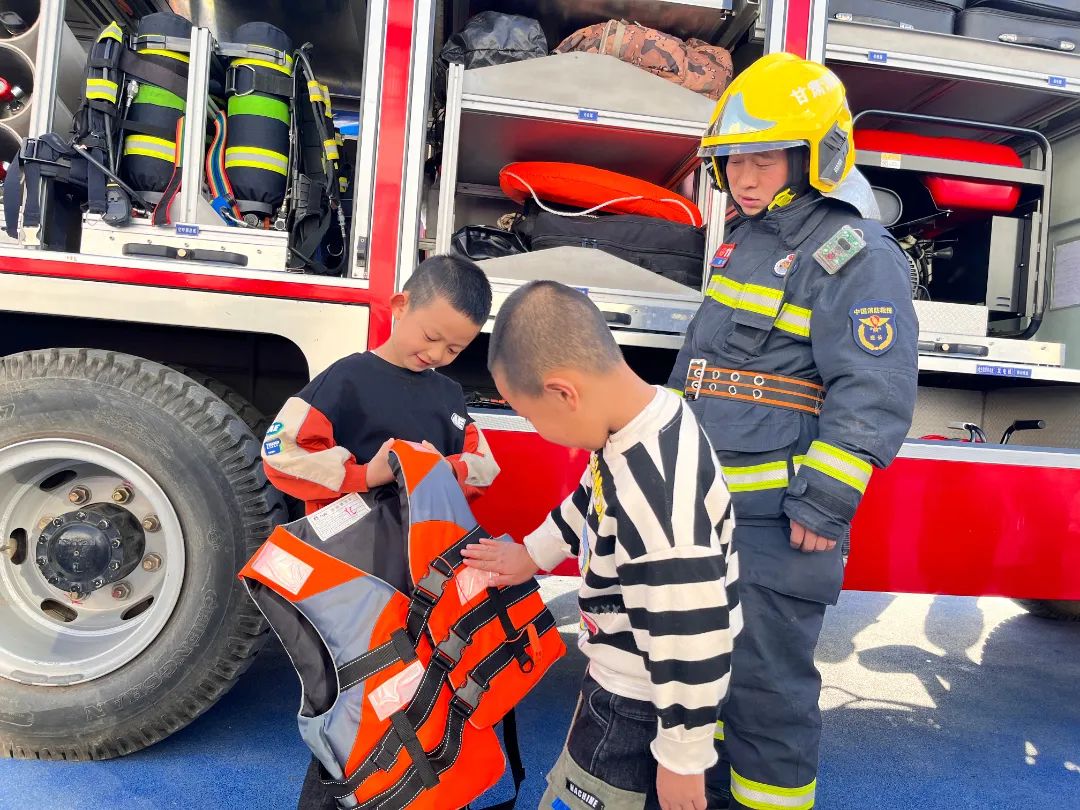 永昌县第三幼儿园、金昌市第三小学双湾校区的孩子们近距离地观察消防车,跟随消防官兵的讲解了解各种器材装备,看一看、听一听、摸一摸,更全面地了解消防安全知识。