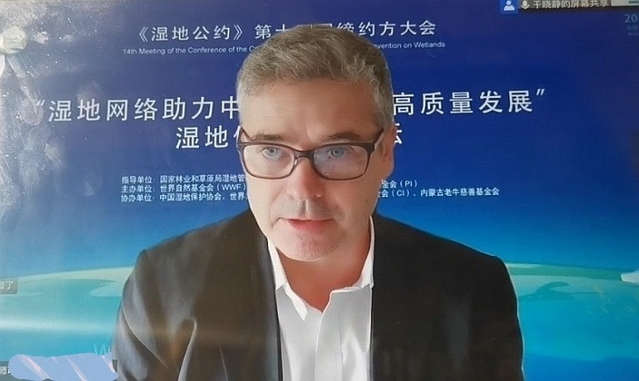 世界自然基金会全球淡水项目负责人斯图亚特·奥尔视频致辞。