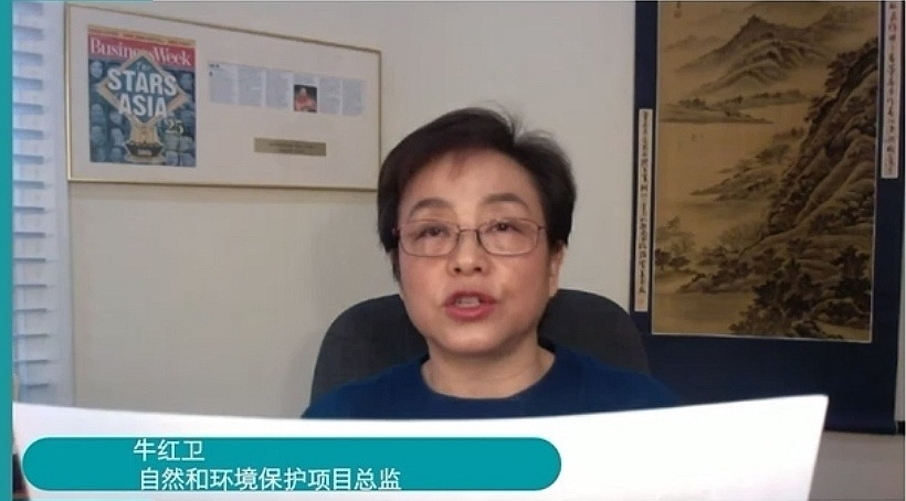 保尔森基金会自然和环境保护项目总监牛红卫视频致辞。