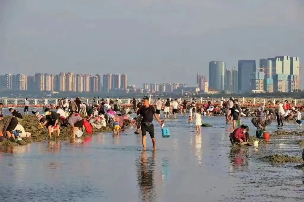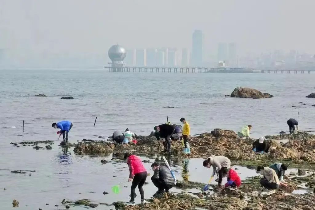 大风过后市民们纷纷来到海边赶海 图/谢彤