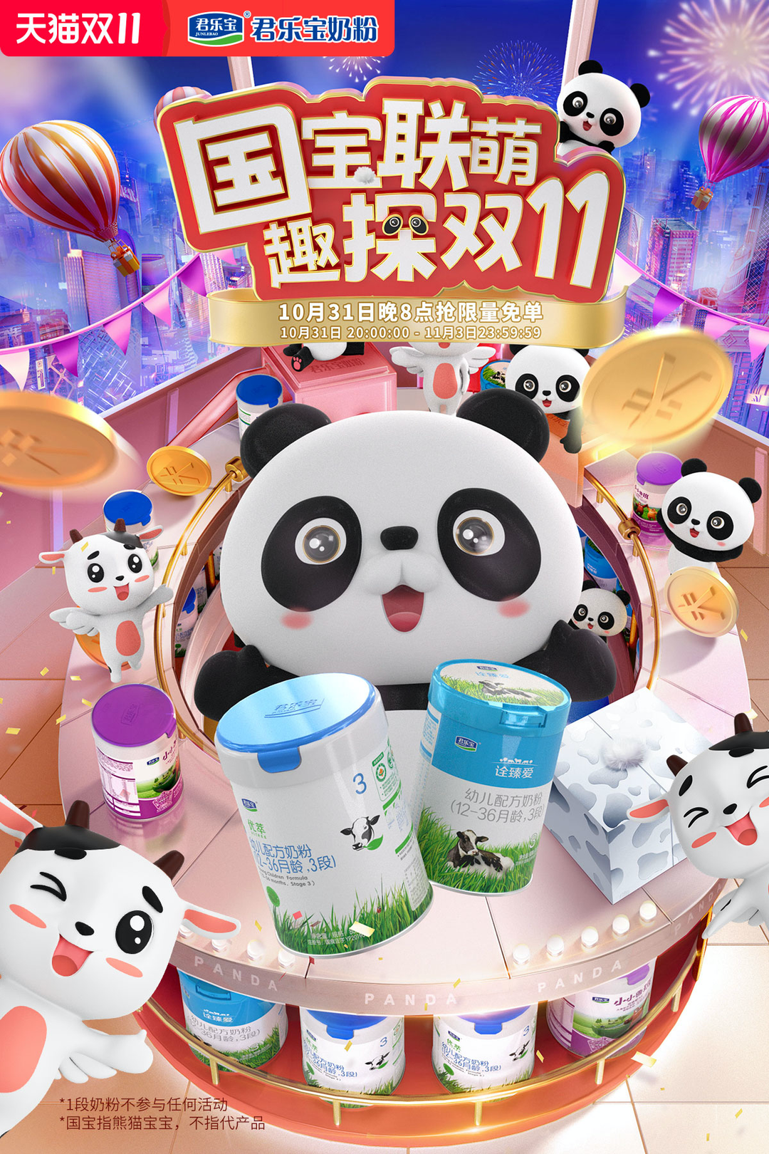 君乐宝奶粉深谙要想触达更多消费者,就要借助多平台多渠道新形式。君乐宝奶粉以“国宝联萌”主题为引线,抓住电商平台双11契机,线下线上一线打通,精准实现更多母婴用户触达。