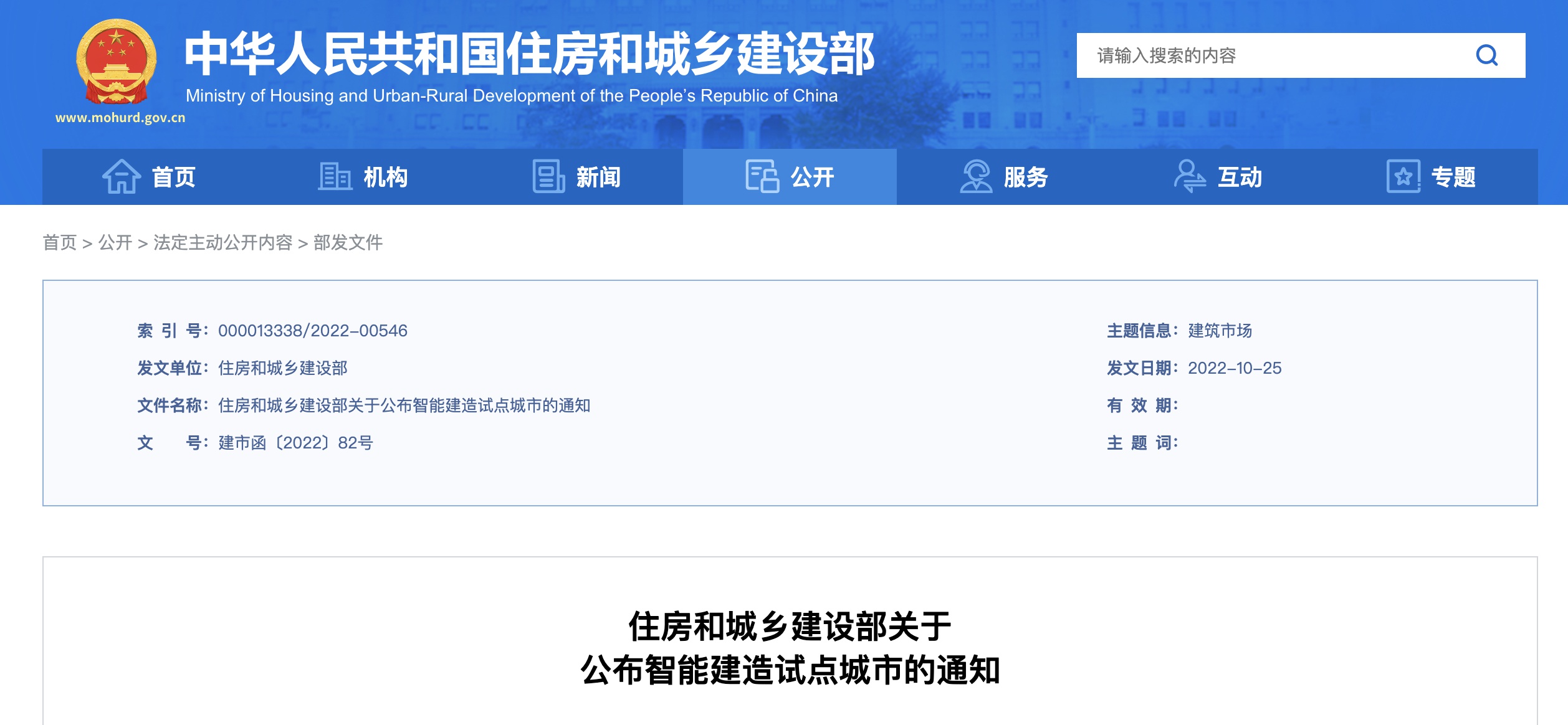 据住房和城乡建设部近日印发通知,为贯彻落实党中央、国务院决策部署,大力发展智能建造,以科技创新推动建筑业转型发展,经城市自愿申报、省级住房和城乡建设主管部门审核推荐和专家评审,住建部决定将北京市等24个城市列为智能建造试点城市,试点自公布之日开始,为期3年。