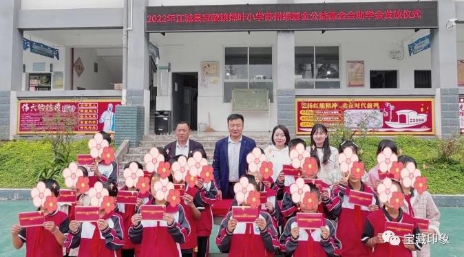 中国教育报客户端讯 11月8日,苏州绿基金公益基金会助学金发放仪式在宝藏镇绿叶小学举行。自2020年8月以来,苏州绿基金公益基金会援建宝藏镇绿叶小学,帮助该校完成操场硬化计向学校捐赠物资、助学金46万元,并长期资助20名品学兼优的小学生每人每学期500元,至其小学毕业,本次共发放2022年度助学金2万元。