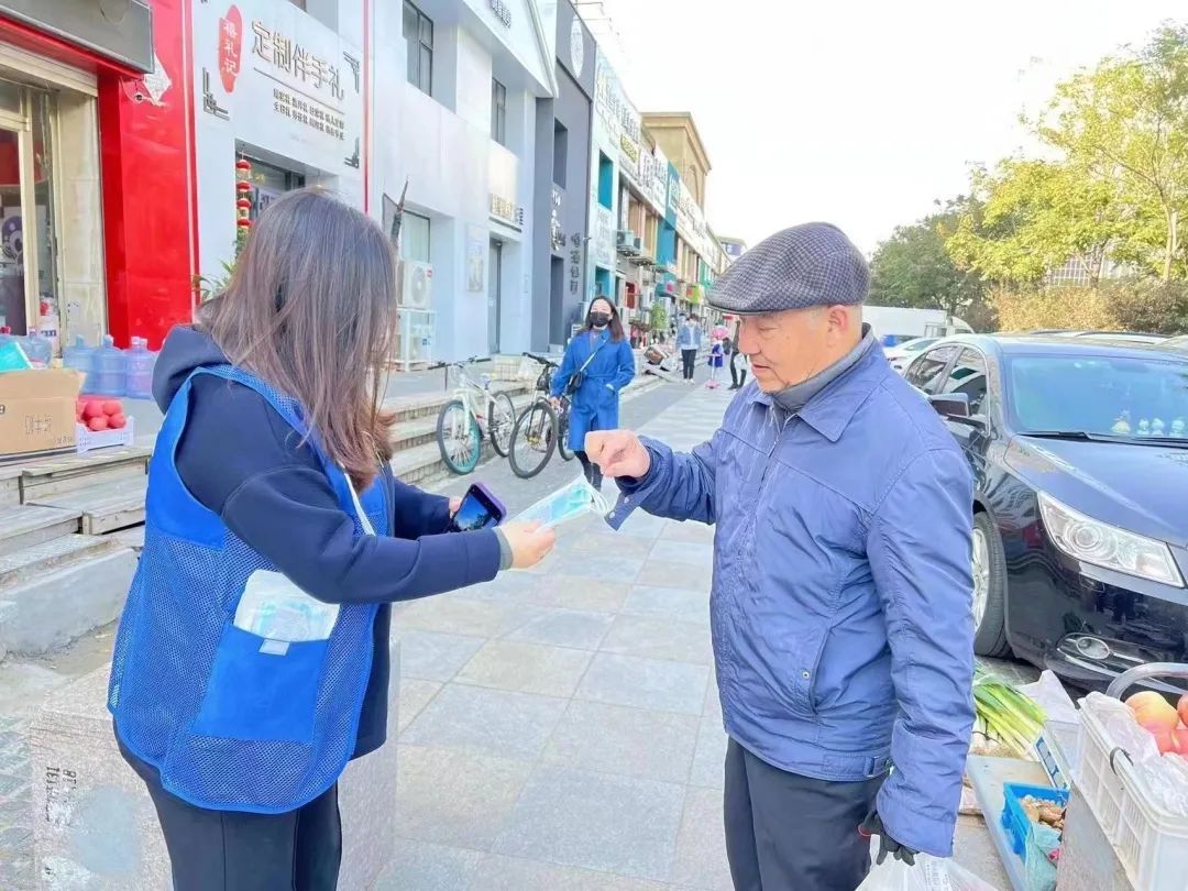 “您好,请您请您外出时务必佩戴口罩,特别是在公共场所……”活动中,近千名青年党员们主动放弃节假日休息时间,身着志愿马甲深入大街小巷,尤其在商场、企业、餐馆等人员密集区,积极宣传疫情防控相关知识及佩戴口罩的重要性,向未佩戴口罩的居民发放口罩。志愿者劝导商户、居民要“罩”顾好自己,因为这既是对自己的保护,也是对他人负责。