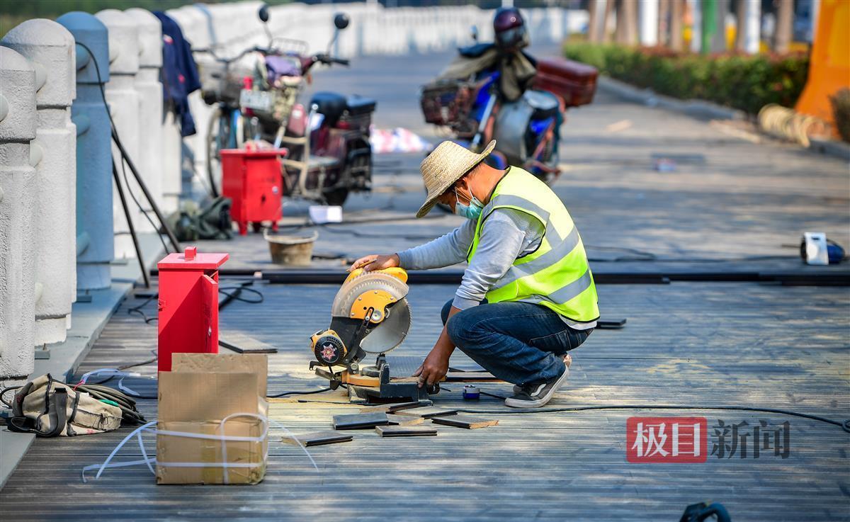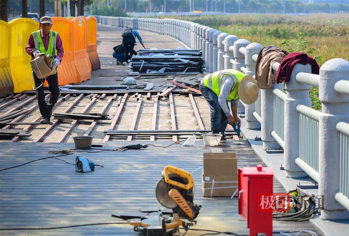 “近20天来,我们已经更换了近3000平方米的竹质材料地板,另外栏杆的油漆和栈道边沿的大理石铺设,都在同步进行,估计还要半个月左右才能全部完工……”现场的工作人员告诉记者。