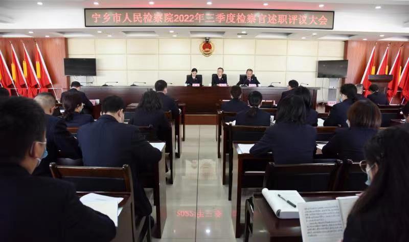 会上,曹宇智组长传达了长沙市检察院党组书记、检察长余湘文在“争先创优先进单位”授牌仪式暨2022年第三季度检察官述职评议大会上的讲话精神,对宁乡市检察院检察官述职评议工作提出要求:要深化认识,“从政治上看”检察官述职评议工作,切实担负起落实上级部署的政治责任,更加注重过程管理,不断提升自身政治素养、业务素养和职业道德素养。要真评真考,切实运用好检察官述职评议考核成果,把检察官述职评议、检察官业绩考评和检察官惩戒工作贯通起来。要把准方位,以更强责任感向着更高更新目标迈进。聚焦“全省第一、全国一流”的更高目标,紧盯重点领域加强法律监督。把认真规范作为职业习惯,减少或者遏制办案瑕疵,不断提升办案质效,推动长沙检察跻身全国一流,在大战大考中建功新时代。