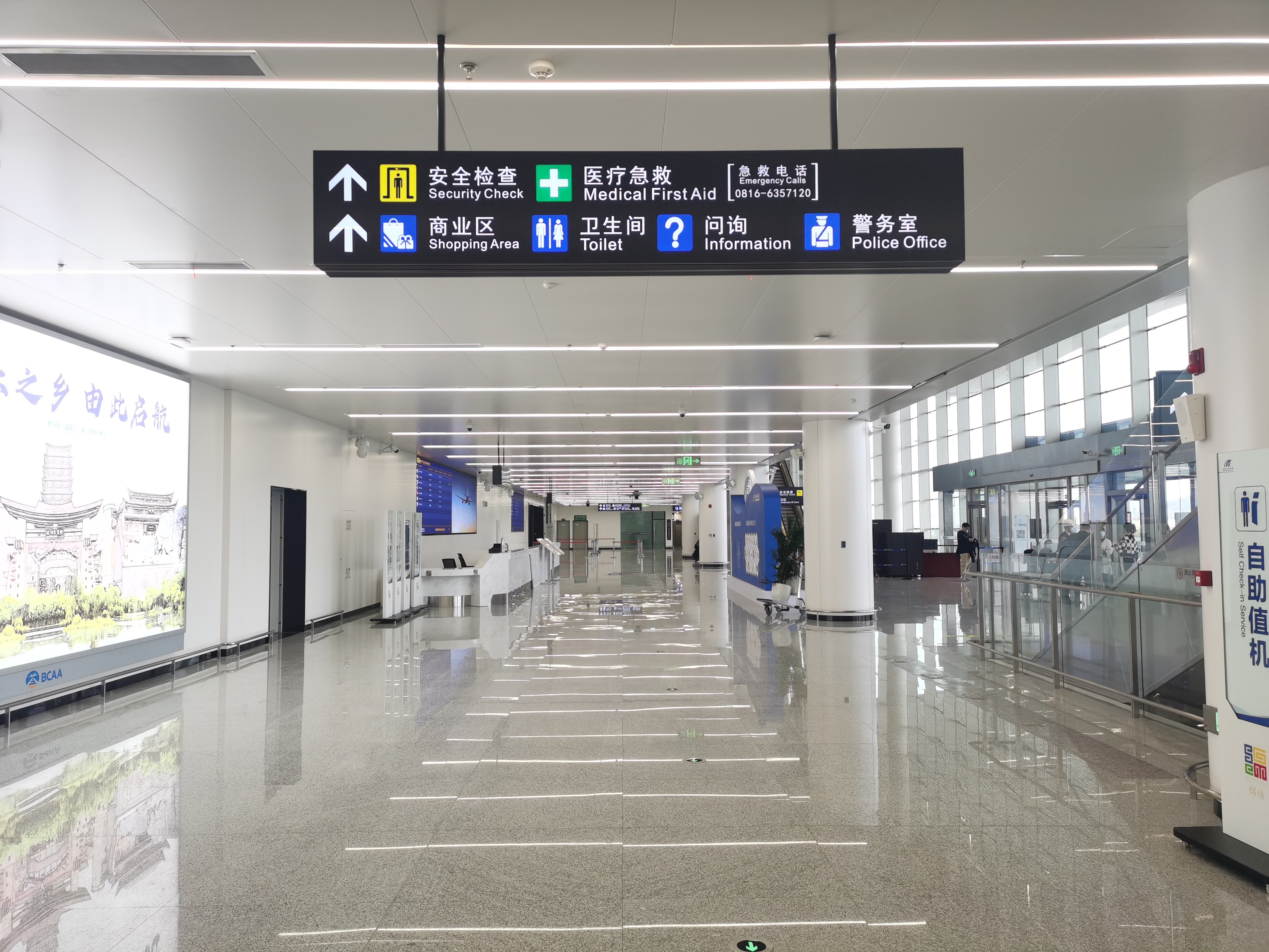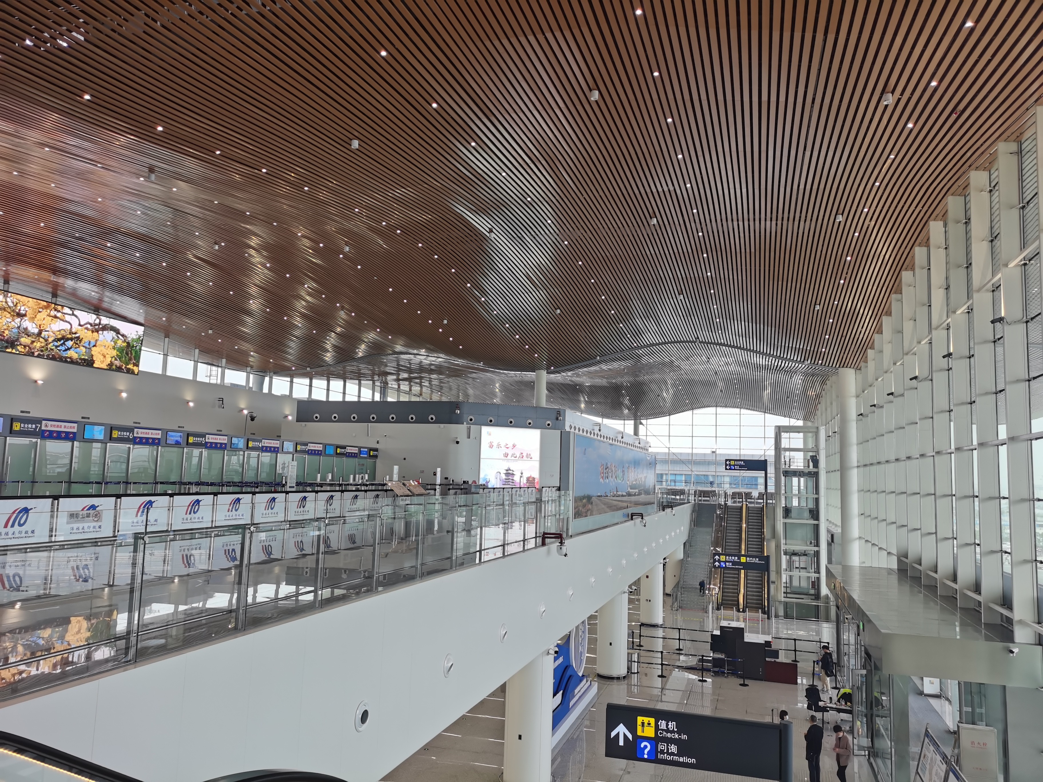 新投运的T2航站楼建筑面积超2万平方米,建筑高度22.9米,包含侯机厅、出发层、到达层、VIP候机室、行李分拣厅等综合交通系统。它与机场原T1航站楼一起,能提供13个登机口、9个登机廊桥,可满足每年500万人次的进出港需求。