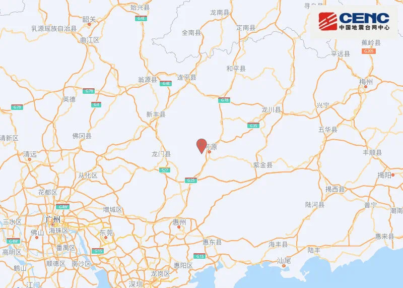 记者从省应急管理厅获悉,11月10日8时26分,广东河源源城区(北纬23.76°,东经114.63°)发生2.5级地震,震源深度10公里。震中位于河源市源城区源西街道,距离河源市城区7公里、广州市城区156公里。河源市源城区有轻微震感,暂未接到人员伤亡和财产损失情况报告。