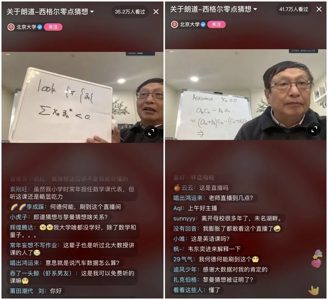 很多人都在直播评论区感慨:“这辈子也是听过一流数学家讲课的人了”“我居然能上北大了”“没想到有一天我也能围观学术前沿”……