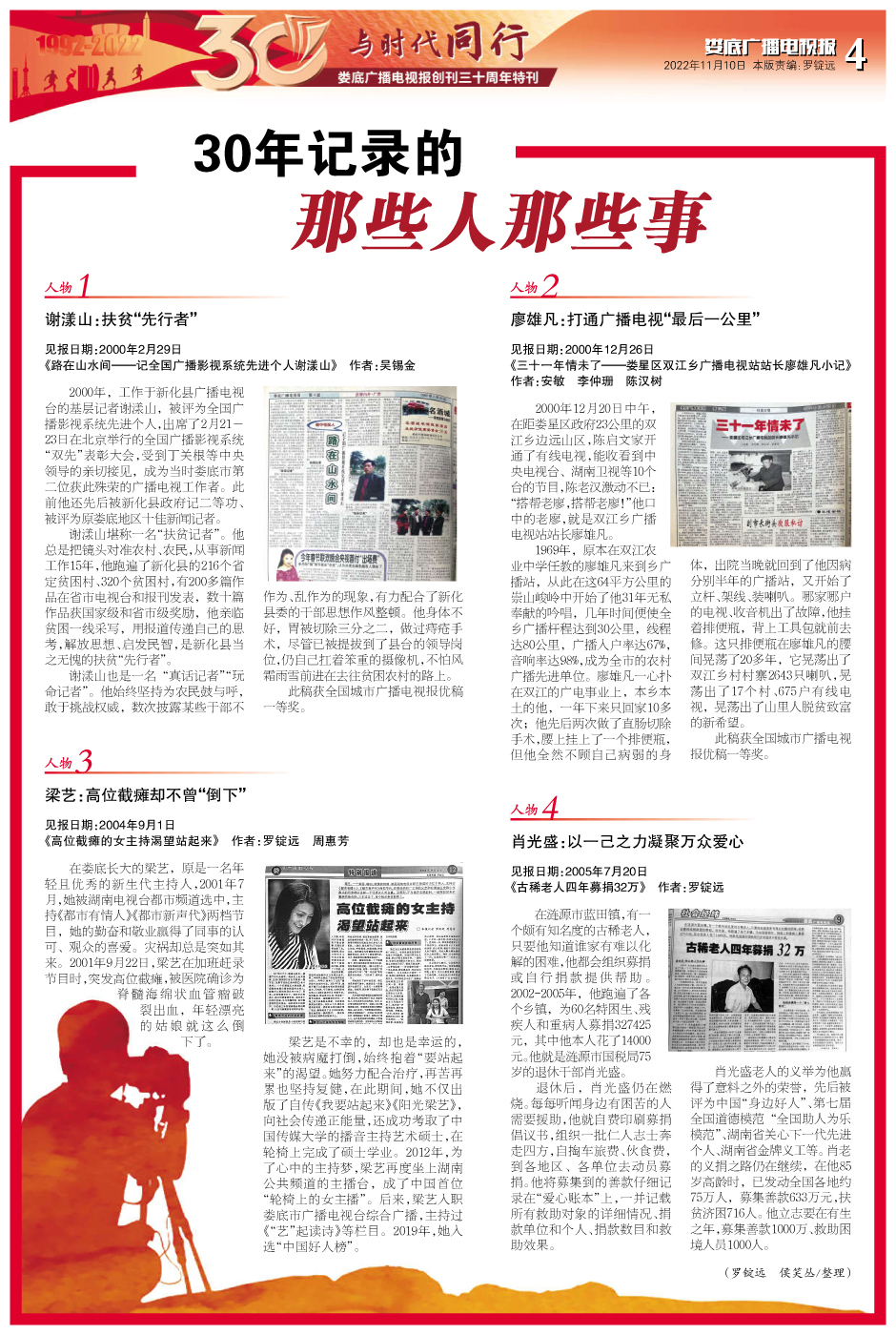 1992年,一个充满激情与希望的年份。这一年,一份透着油墨清香,带着新闻信念和对未来的向往的娄底广播电视报应运而生,意气风发地走进了老百姓的心里。30年筚路蓝缕,30年风尘仆仆,30年以梦为马,30年执笔为剑,这份报纸和一批批广电报人始终站在娄底经济和社会发展的前沿,发现真实娄底,传播娄底故事,报道进步力量,记录火热年代,高举舆论监督之剑,激浊扬清。