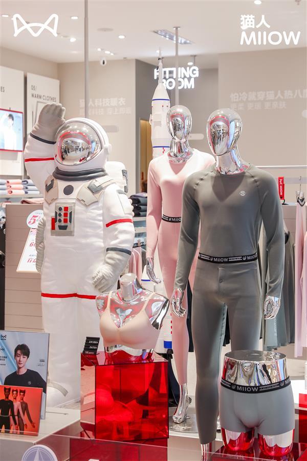 作为重新布局线下零售渠道的“第一店”,位于武商梦时代的猫人科技内衣生活馆,面积达300平方米,分为袜品区、家居服产品区、保暖产品区、轻运动产品区和儿童产品区等,布局科技感更强,视觉效果更引人。店内还设有直播间,主播可在店内线上直播带货,线上线下同时发力,单店年销售额目标超千万元。