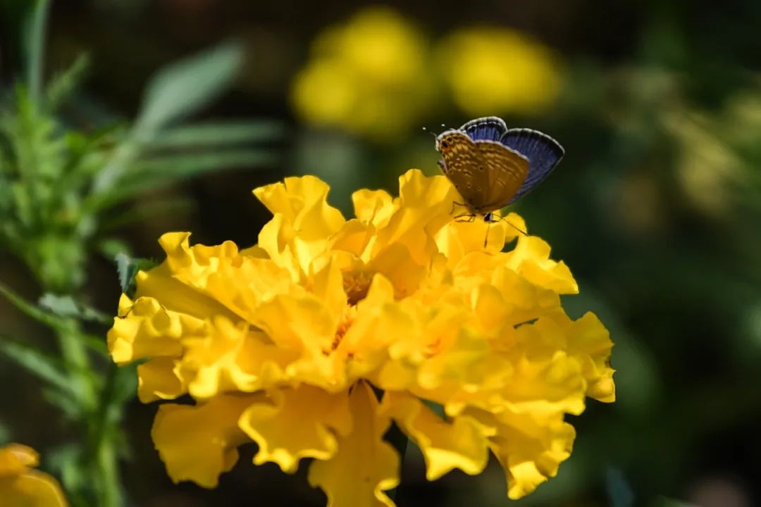 蝴蝶在花朵上飞舞。记者史伟 摄