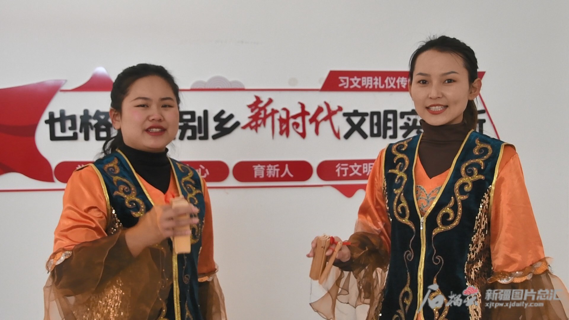 近日,布尔津县也格孜托别乡石榴籽宣讲团用快板表演的形式为各族干部群众宣传党的二十大精神。