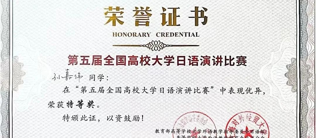 祝贺!旅游学子孙嘉伟在全国高校大学日语演讲比赛斩获特等奖!