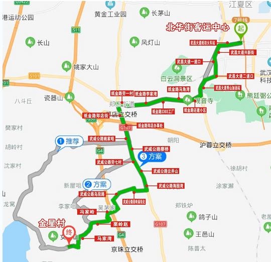 线路走向:北华街、武昌大道、纸金路、武咸公路