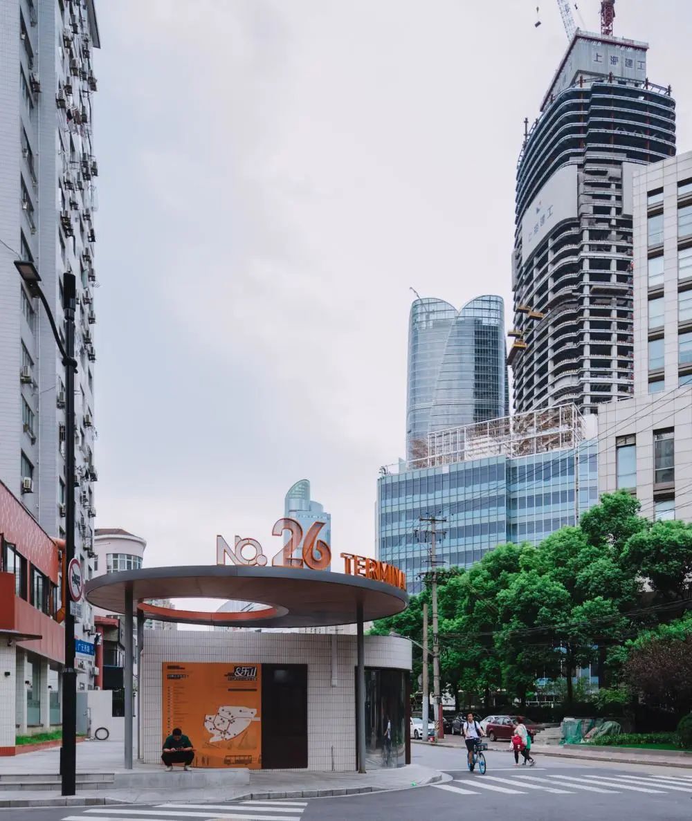 从广元西路26路车站开始到小菜场,两侧商铺居多,这里过去是马路街市。设计团队希望道路美观,但又能保留商业的烟火气。