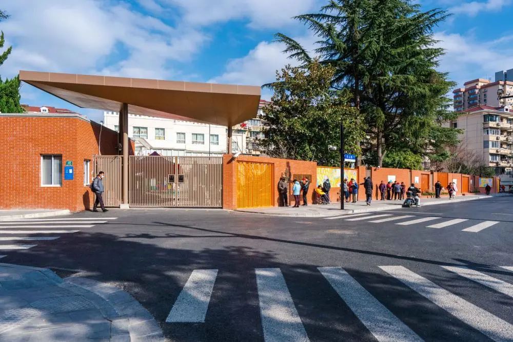 如果简单封堵围墙,对整条道路其实有所减分。在徐家汇街道和属地居委会等多方协调努力下,现在的幼儿园门口退让了1米的安全等候距离,架起一座雨棚,为孩子们上下学多一份保障。