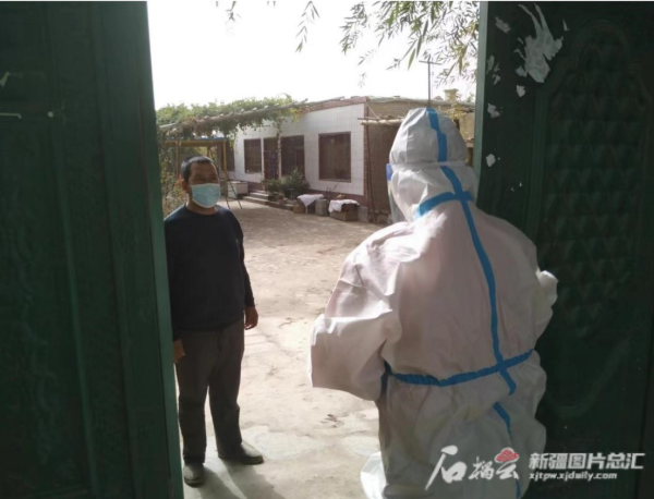 “香梨采摘、棉花采收时,村里疫情防控农业生产两不误,我们需到香梨园、田间去采集核酸。” 伊帕尔古丽说,开始的时候她对村民的梨园、田地位置不熟悉,烈日下穿着防护服跑来跑去。几天后,她逐渐熟悉情况,只要大喊一声,村民就会自觉过来排队采集核酸。