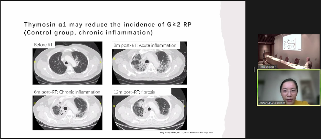 来自中山大学肿瘤防治中心的刘慧教授分享了胸腺肽α1联合同步放化疗治疗胸部肿瘤的有效性和安全性。GASTO-1042研究显示,胸腺肽α1有助于降低IMRT- HRT联合化疗治疗不可切除/复发胸腺上皮肿瘤后放射性肺炎的发生率,维持患者的生活质量;GASTO-1043研究显示,胸腺肽α1显著降低同步放化疗治疗局部晚期NSCLC后的2级及以上放射性肺炎和3-4级淋巴细胞减少症的发生率。