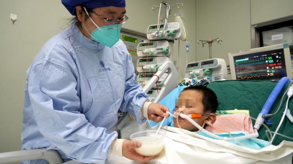 术后,小患儿慷慷(化名)可以进食。通讯员刘坤维 陈有为 摄