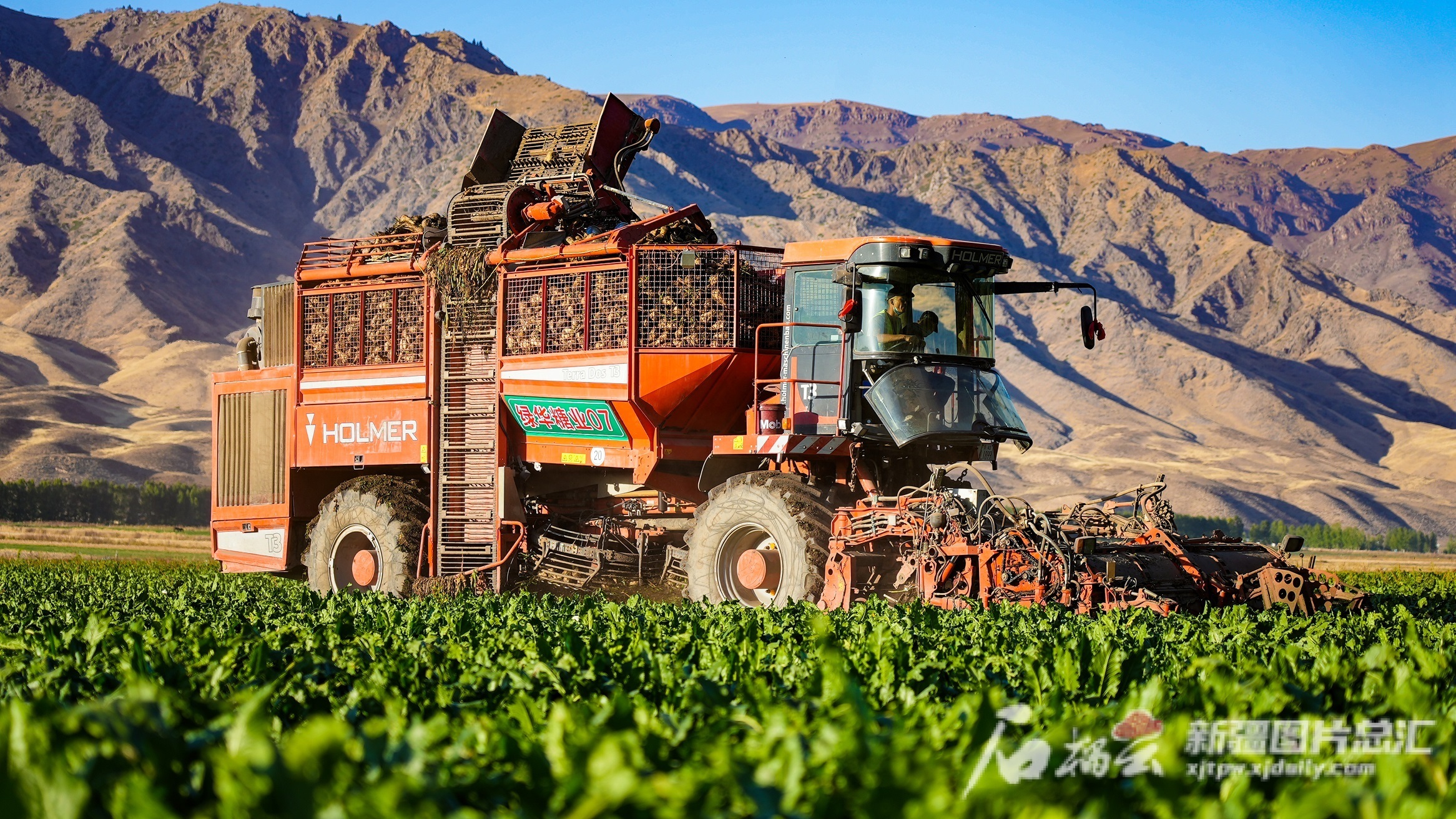 昭苏县10.6万亩的甜菜到了收获期,田地里甜菜收割机来回行驶,从播种到收获已全程实现机械化。巴特那生摄