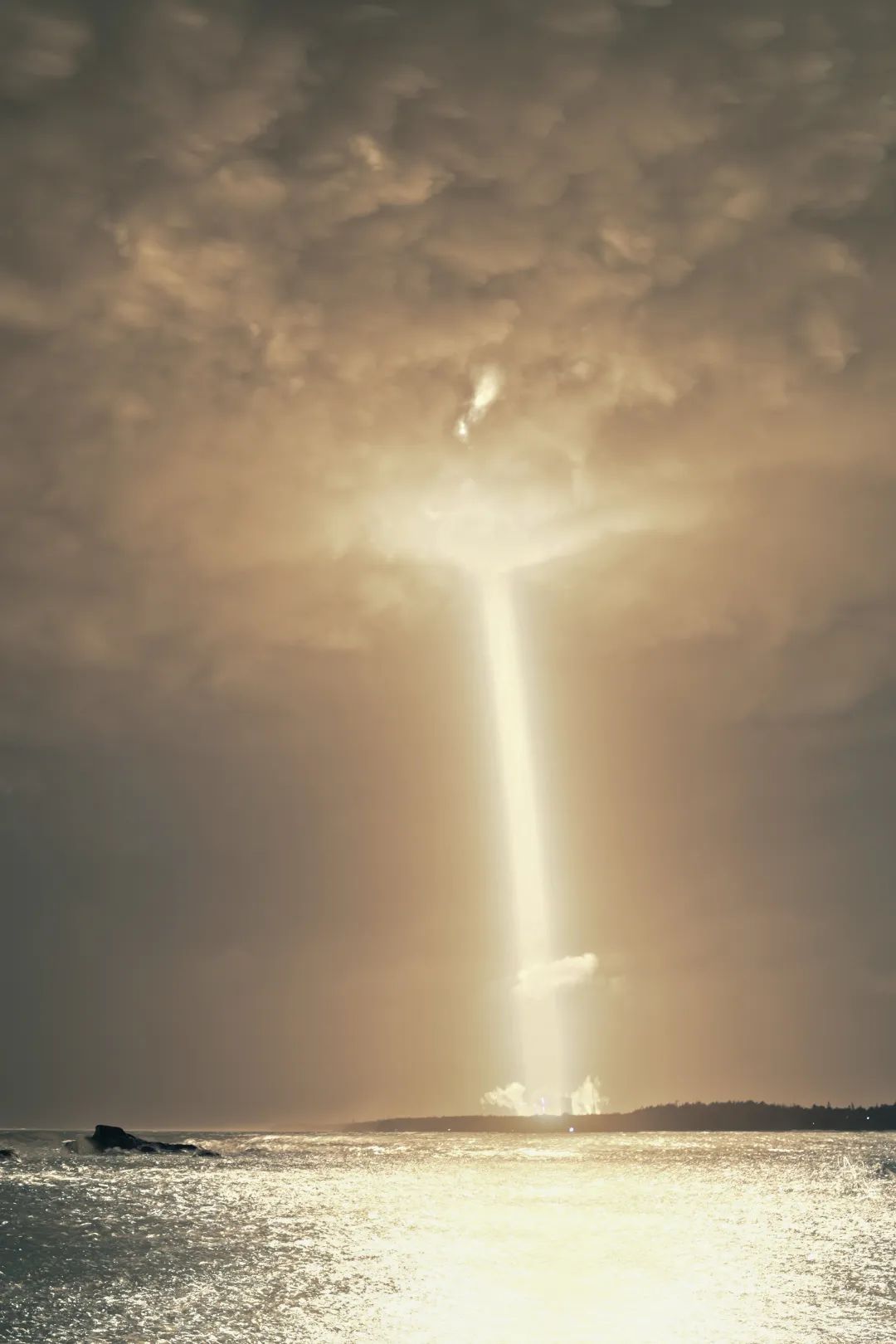 (长征五号火箭搭载嫦娥五号探测器发射升空,形成一道光束直冲云霄,摄影师@郭煜坤)