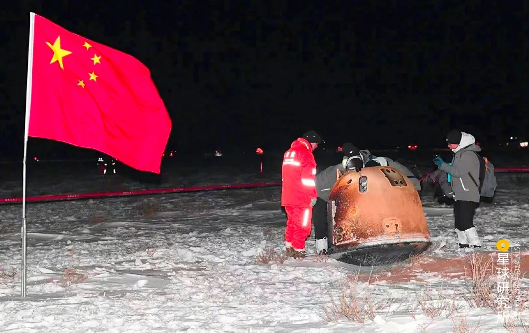 (嫦娥五号返回器返回现场,图片来源@国家航天局)